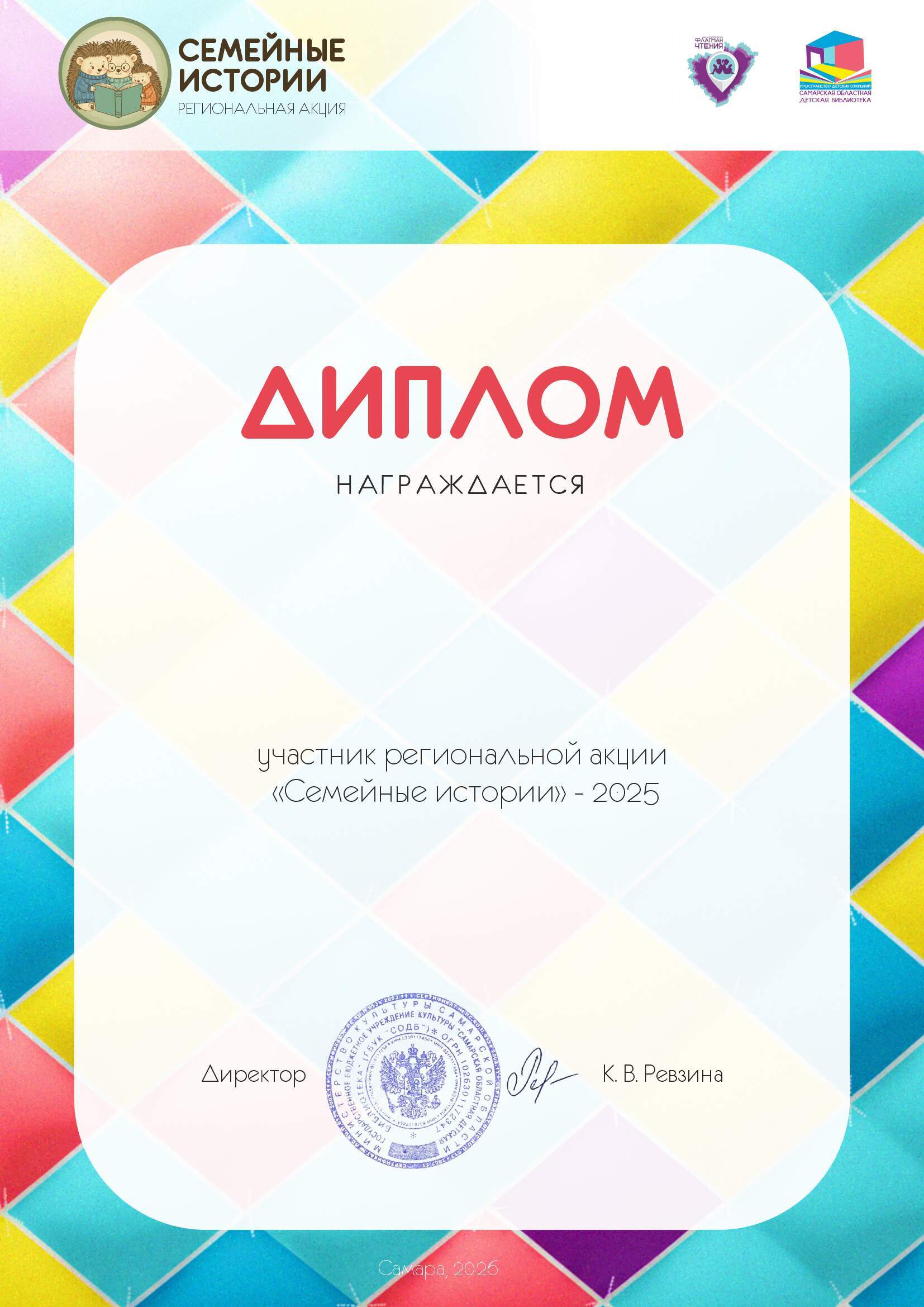 Диплом участника региональной акции "Семейные истории" - 2025